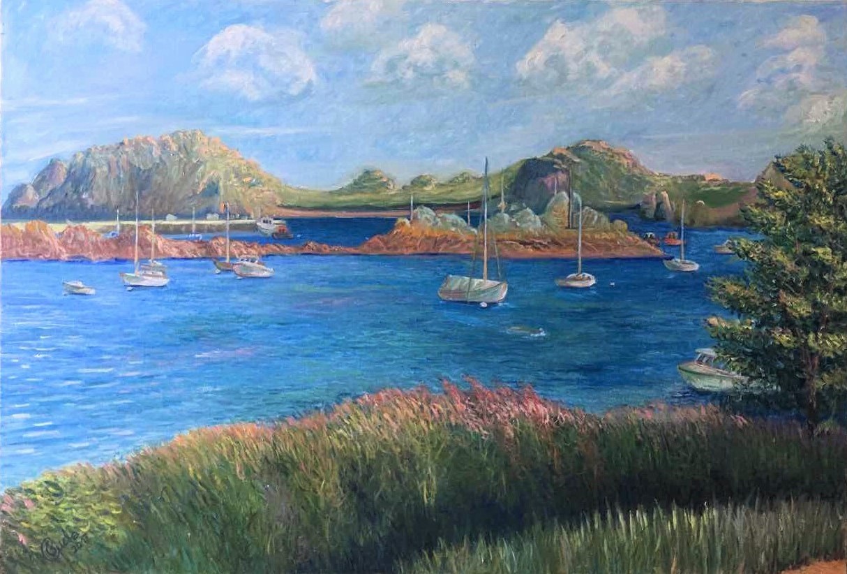 Paysage de Bretagne de grande taille...(89 x 130 cm) d'une luminosité digne de la Méditerranée! Huile sur toile, mai 2017