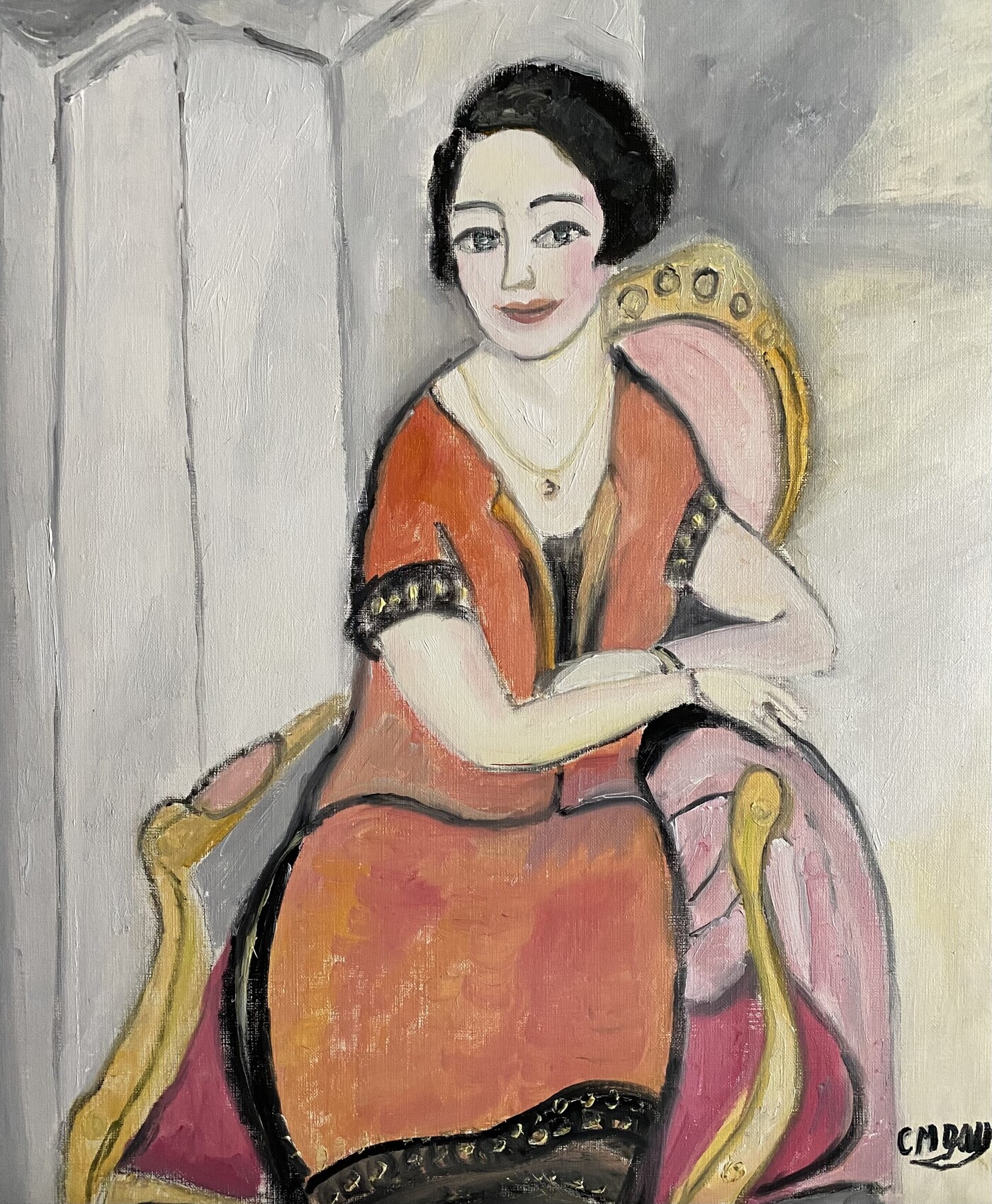 Huile sur papier 46/38. Le 23/07/22. Bien à vous, je vous présente "L'intemporelle" .... Amitiés. Claire.