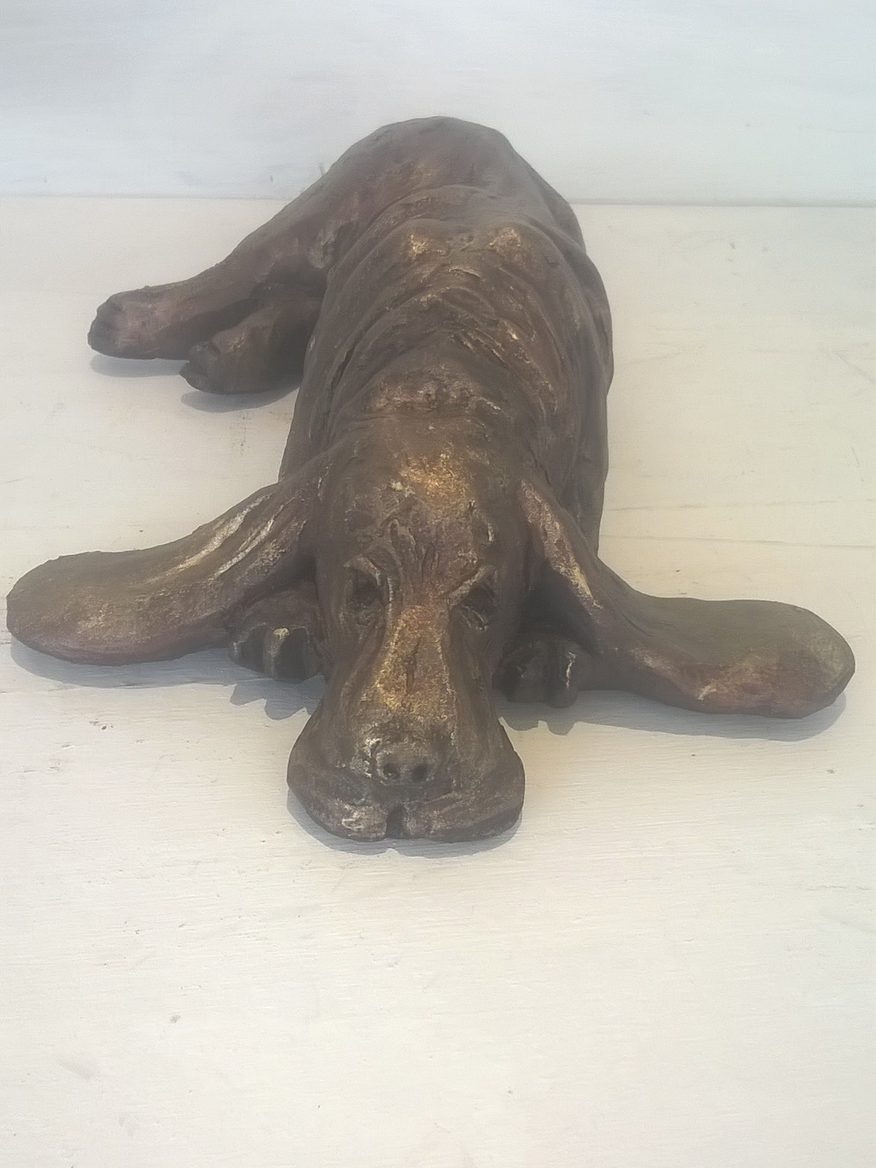 Sculpture d'un basset en grès ciré Cuisson four pro Pièce unique ht 7 - longueur 24 cm