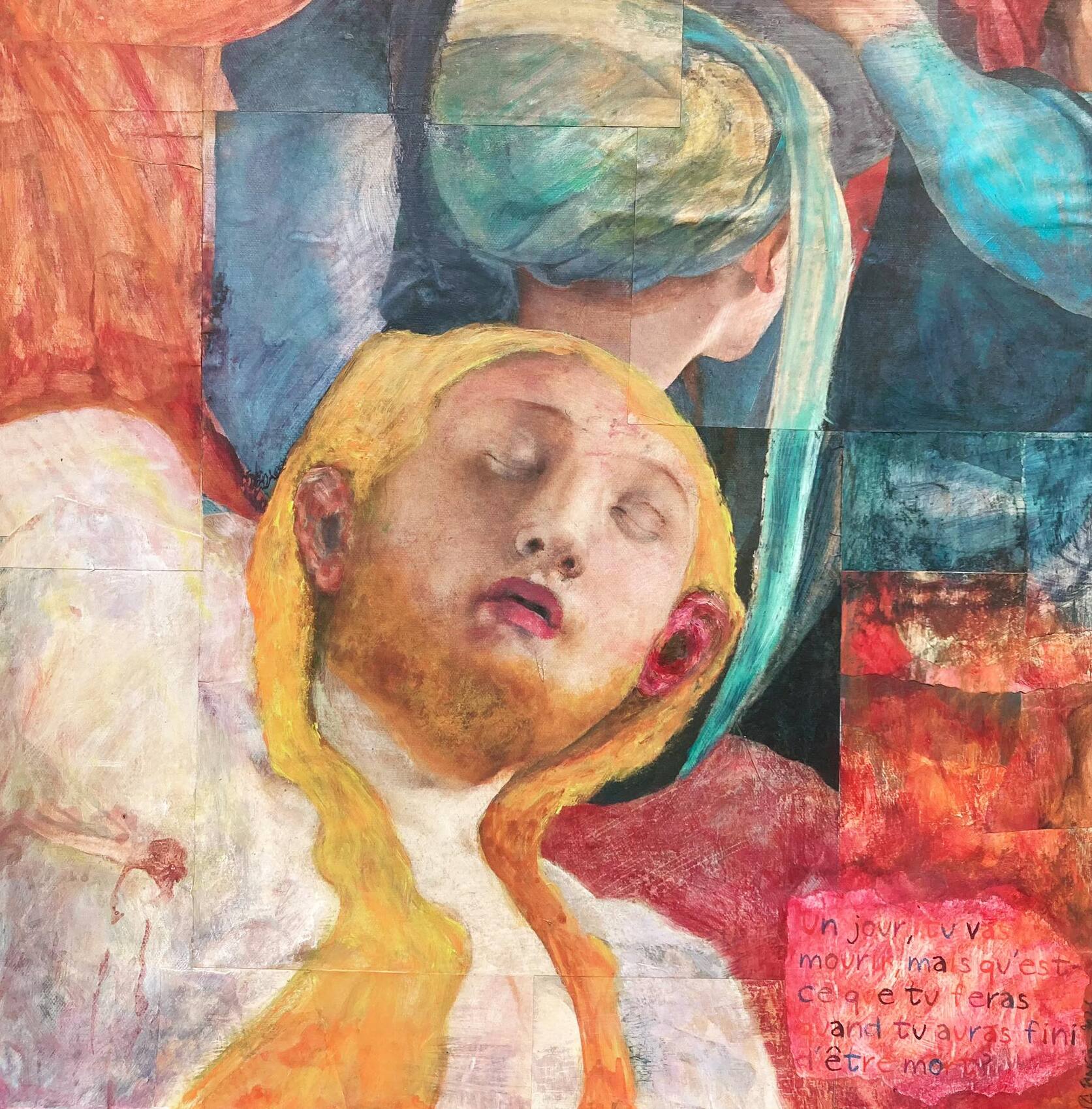 Collage, encre et acrylique sur toile, janvier 2025.