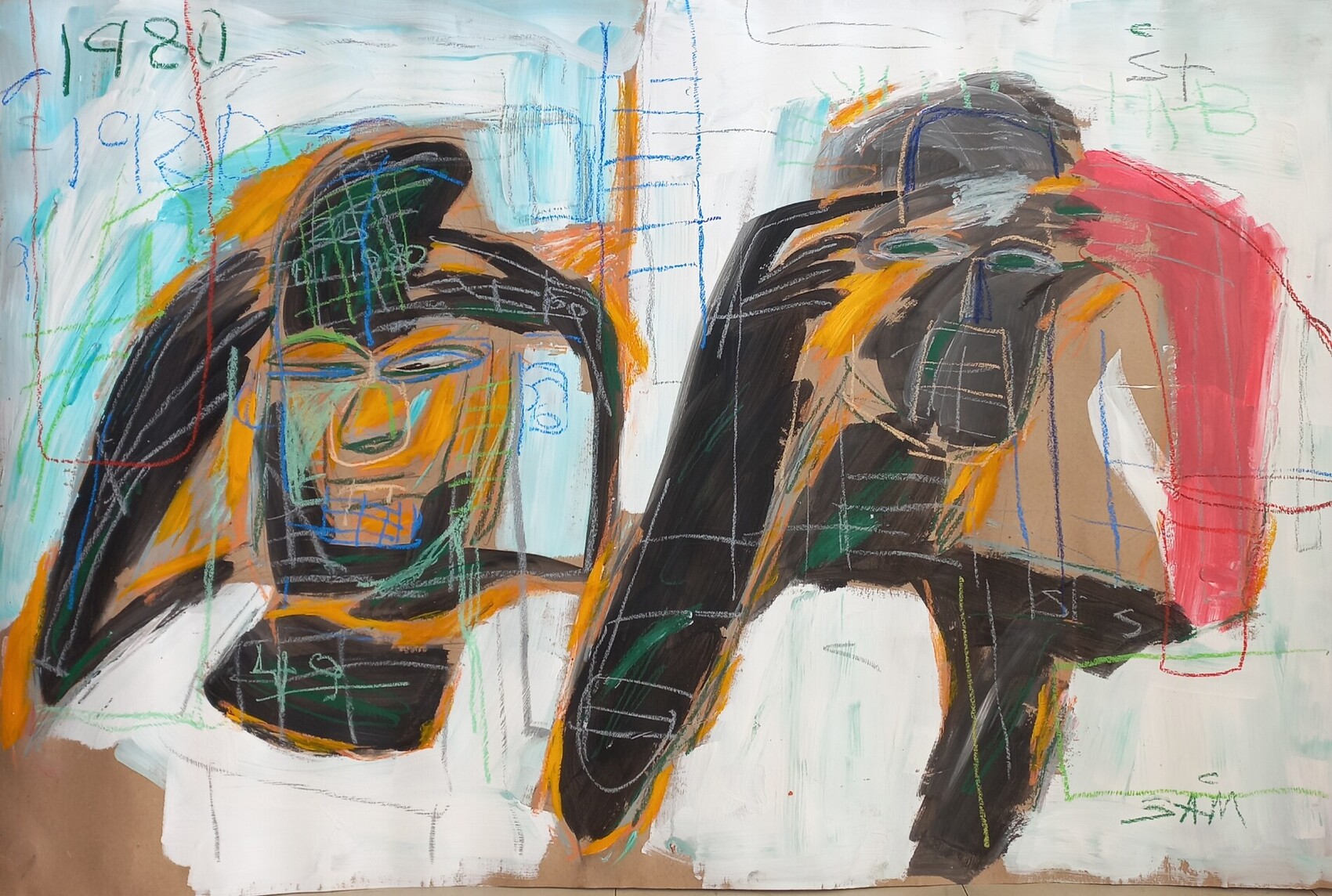 Art brut moderne expressive 117x80cm acrylique sur carton signé Sam KEUSSEYAN-Gladiateur