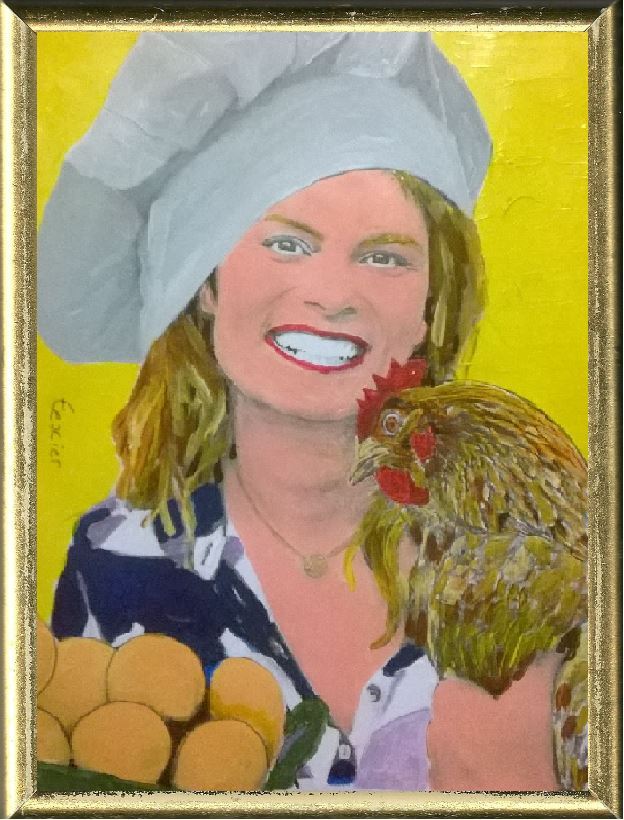 "Pour Sarah" Type : portrait de Sarah WIENER chef cuisinière ,chef d'entreprise Acrylique Le fils du Peintre Texier de Pélussin