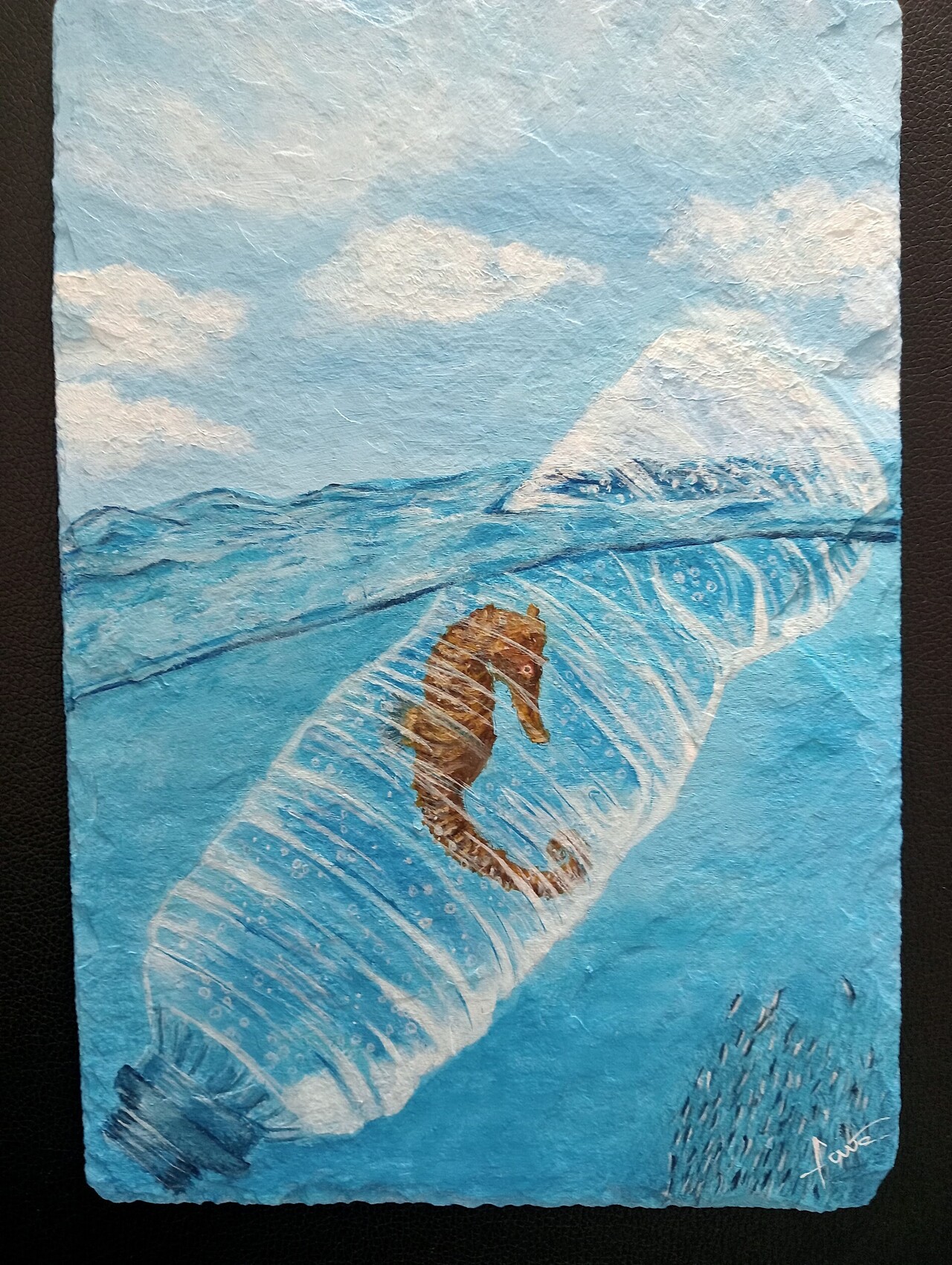 Acrylique sur ardoise 32 x 22 cm Sensibilisation à la pollution de la mer !