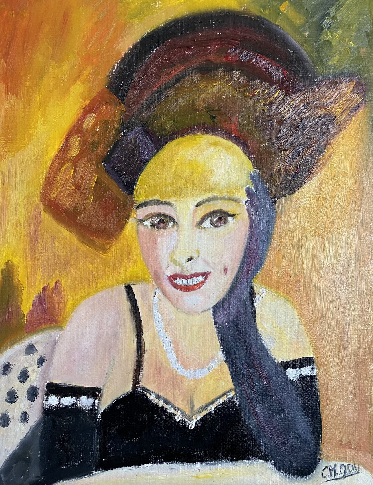 les couleurs sont flamboyantes , elles sont en accord avec le regard malicieux de cette belle dame très chic . J'adore ses gants sa coiffure audacieuse et les bijoux qui souligne sa gorge. Son sourire est enchanteur et son regard noisette des plus malicieux . Cette dame aime séduire assurément ! ce portrait est lumineux , un grand bravo.