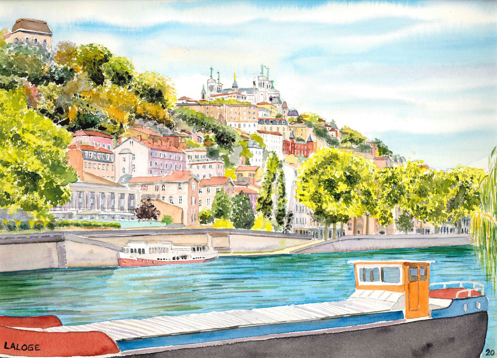 Aquarelle originale des quais de Saône à Lyon en automne D'autres aquarelles sont également disponibles sur mon site accessible en tapant "laurent laloge aquarelliste" dans votre moteur de recherche. N'hésitez pas à le visiter et me contacter Aquarelle réalisée sur papier pur coton 300 g au Format 30 x 40 cm environ encadrée d'un passe partout en contrecollé blanc pour cadre standard de 40 x 50 cm.