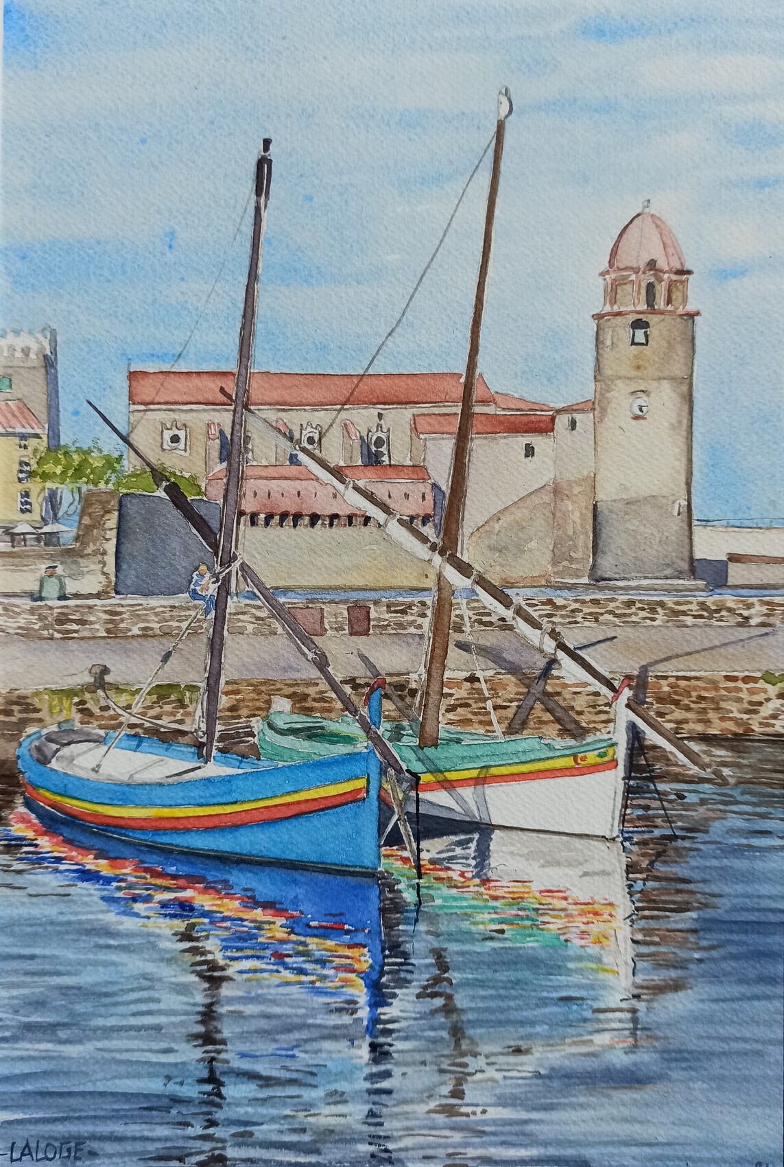 Aquarelle originale du Port de Collioure. D'autres aquarelles sont également disponibles sur mon site accessible en tapant "laurent laloge aquarelliste" dans votre moteur de recherche. N'hésitez pas à le visiter et me contacter Aquarelle réalisée sur papier pur coton 300 g au Format 30 x 20 cm environ encadrée d'un passe partout en contrecollé blanc pour cadre standard de 40 x 30 cm.