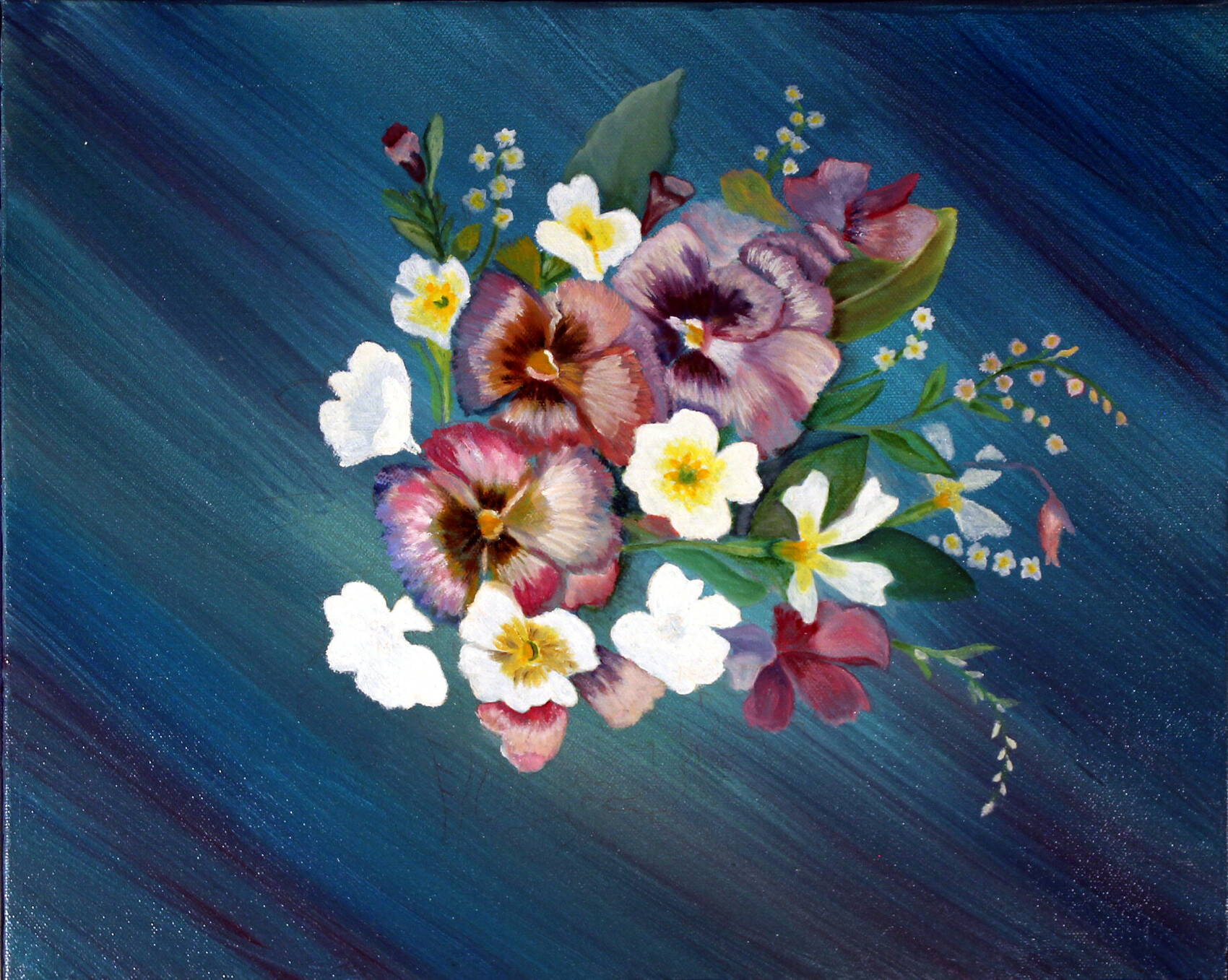 Pensées - 33x41x2cm - 3242016 Peinture acrylique sur toile de lin tendue sur cadre bois, Représentation d'artiste et réaliste. Port, emballage et assurance compris dans le prix, Pour l’Europe et International prix sur demande.