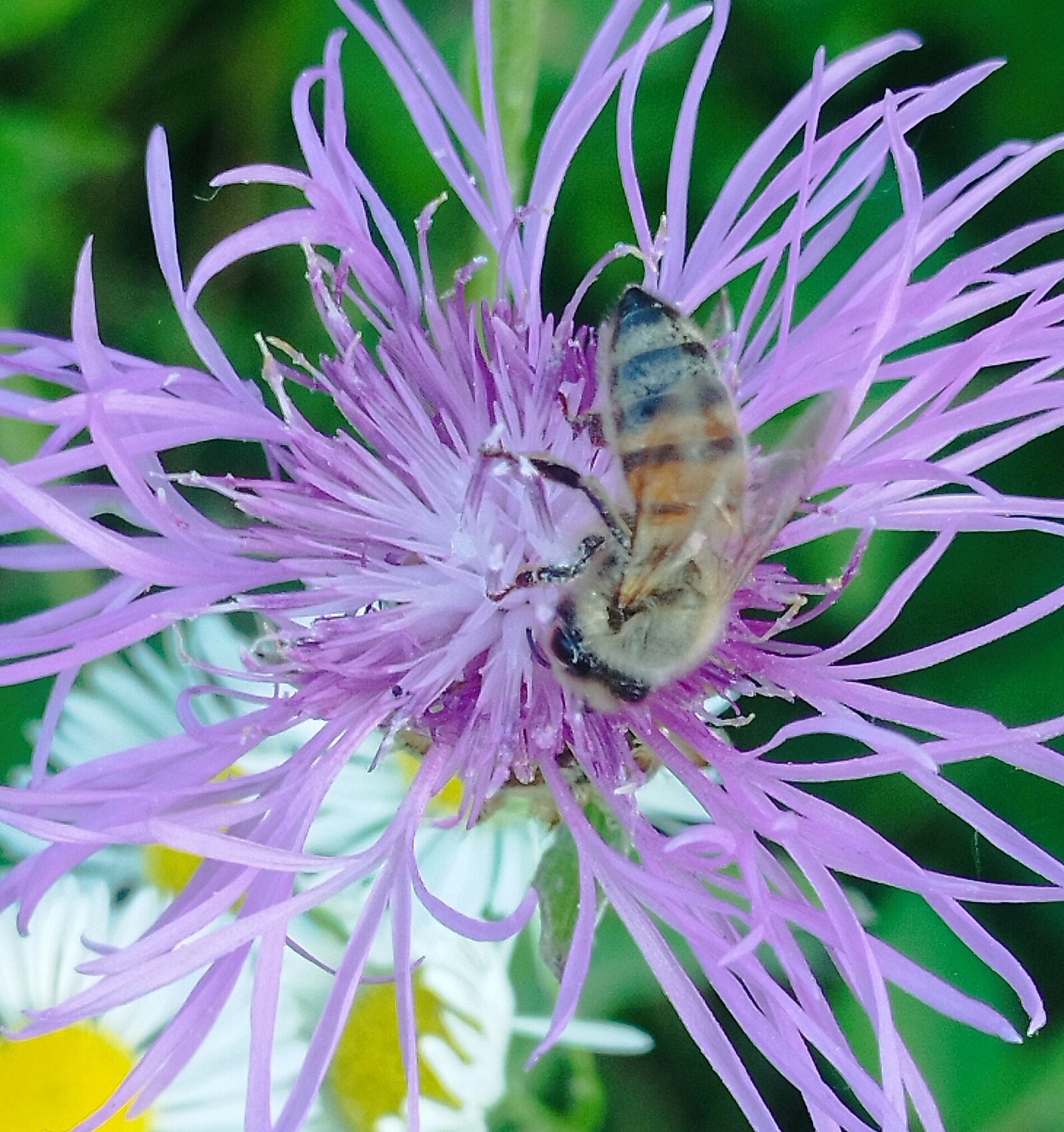 abeille qui butine sur centaurée