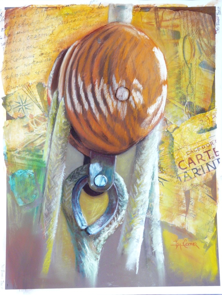 mixte pastel et collage 60x70