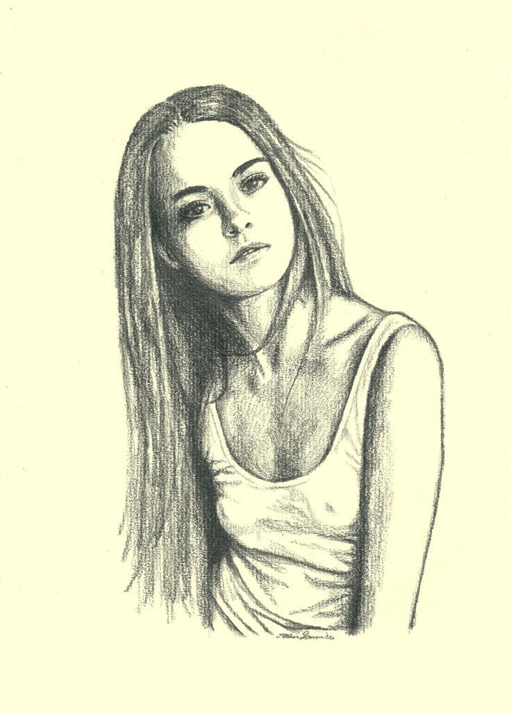 Dessin au graphite, jeune fille.