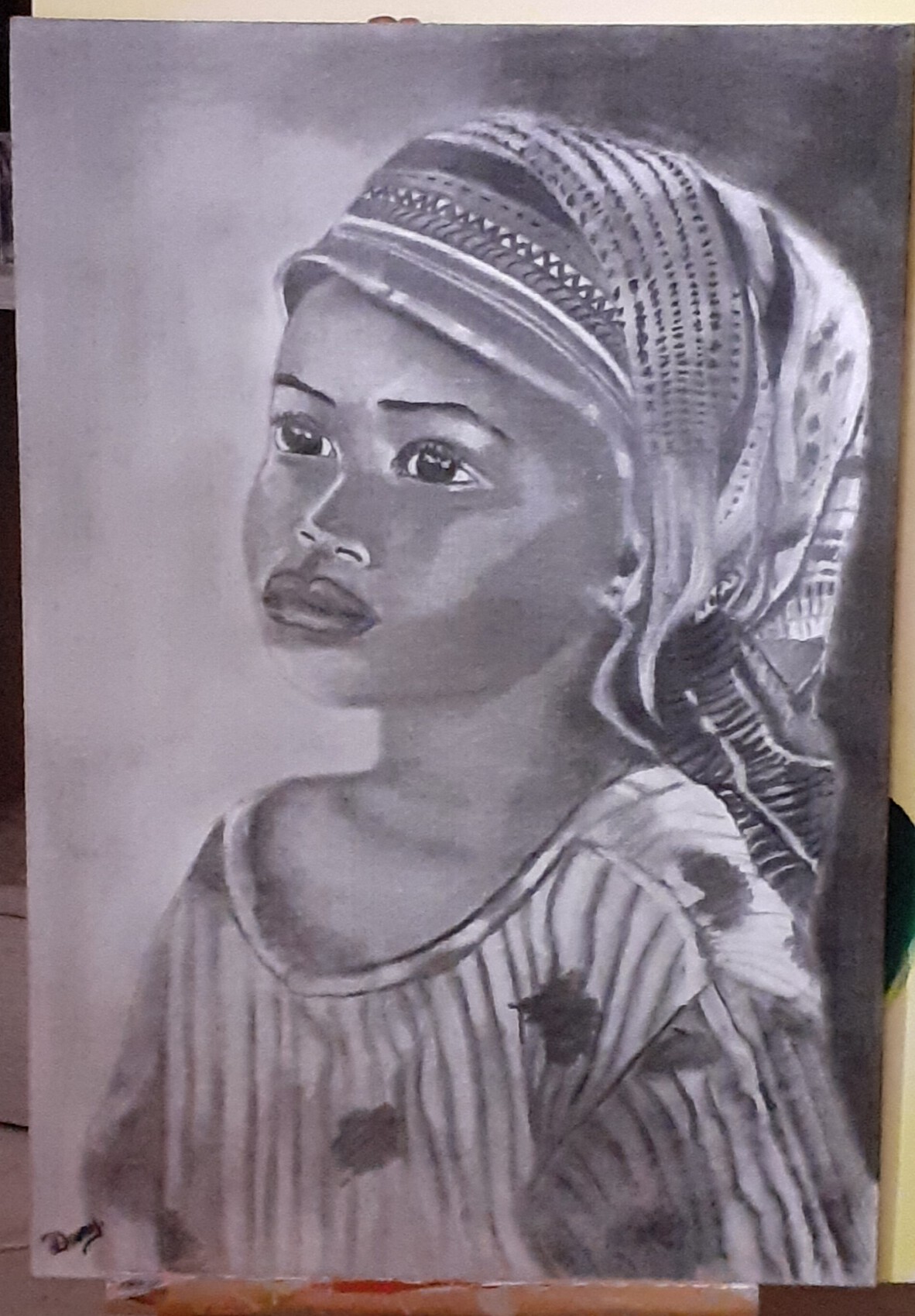 Fusain sur toile cartonnée