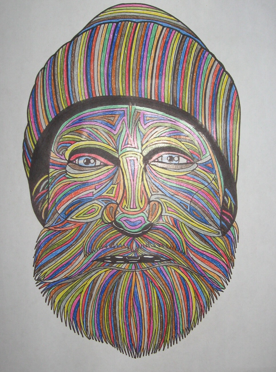 Dessin au crayon de feutre noir et crayons de couleurs.
