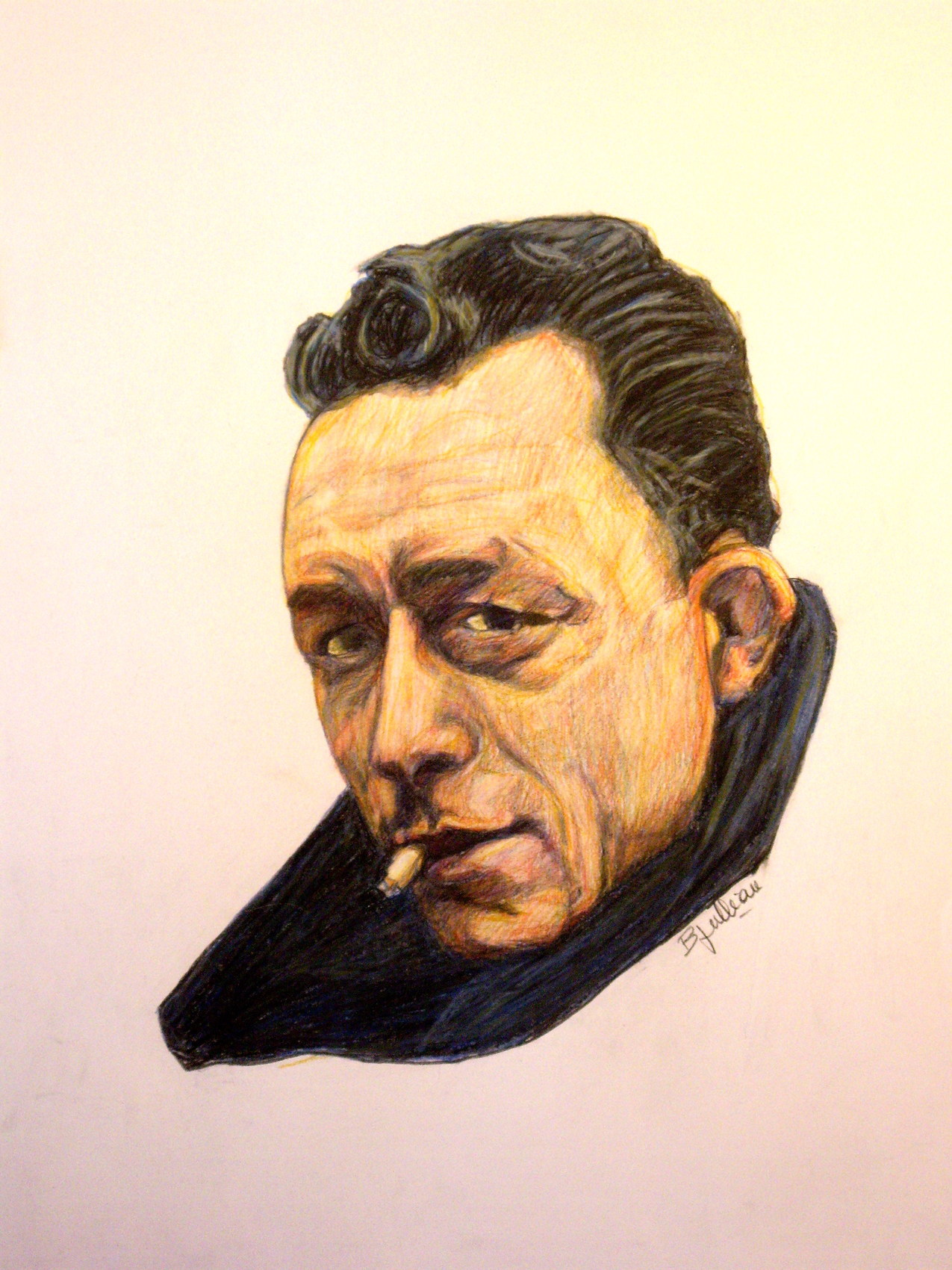 DESSIN COULEURS sur Papier CANSON Format Raisin (50 X 65 cm) , realise au crayon sec par l'Artiste Bernard JULLIAN DESSIN ORIGINAL - avec signature de l'Artiste Albert CAMUS Realise d'apres un Document
