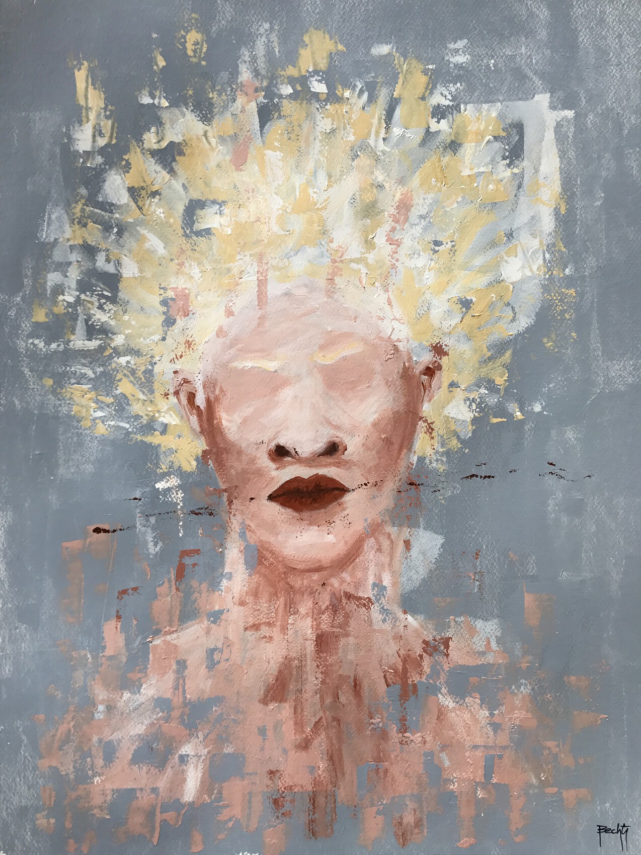 Œuvre d’art de bechti , voici une œuvre original , une peinture à l’acrylique sur papier fort 300gr de format de 50cm de largeur et de 65cm de hauteur et avec le cadre ( 60x80 ) . L’œuvre est signer devant en bas à droite et derrière . Albinism décrit l’états psychologique des albinos africain . Bienvenus sur Bechtia.com