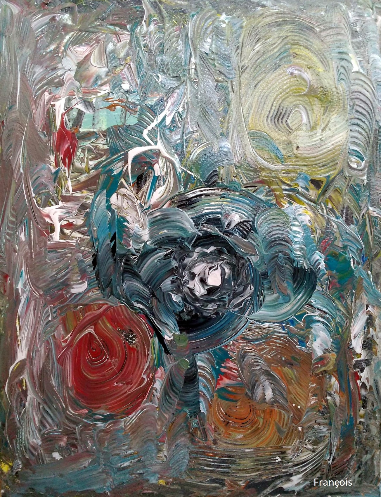 Peinture intuitive , abstraction lyrique, réalisée sur pvc 300 microns, 40*30 cm.