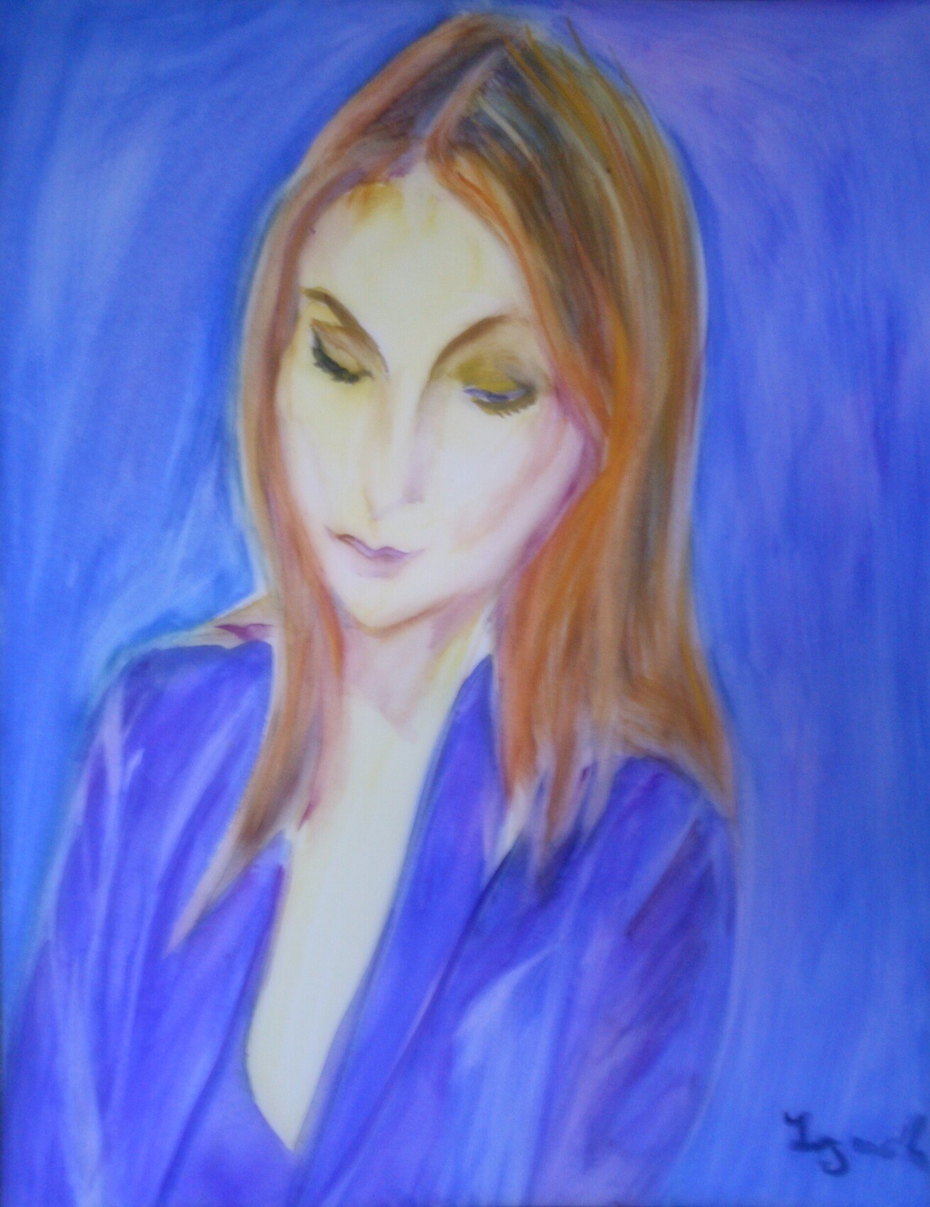 Dans une magnifique symphonie de bleus, cette talentueuse journaliste affiche une grande concentration, magistralement représentée sous vos pinceaux !!! Compliments jean Paul et bonne journée.