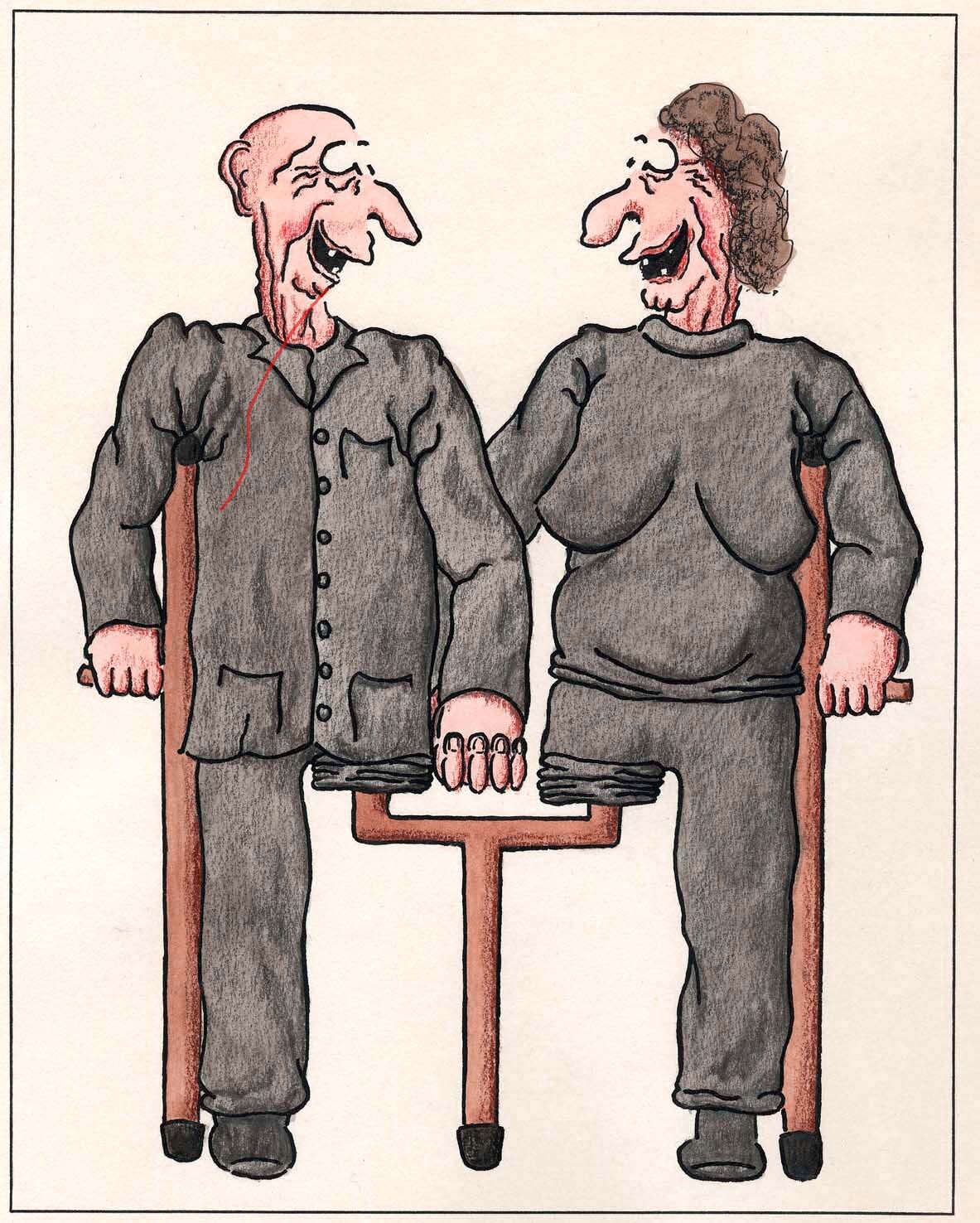 Chouette dessin qui illustre bien l' amour quel que soit le physique. Amour et solidarité. ah si le monde pouvait trouver ses béquilles pour faire la ronde.