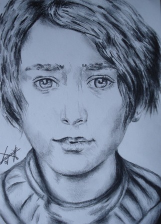 joli portrait, qui interpelle par le regard inquiet beau travail