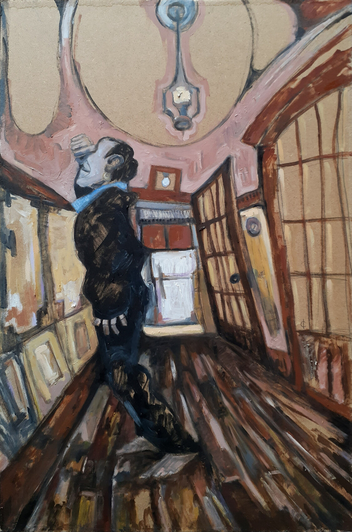 Mine de plomb et huile sur panneau, camille colobert, Montréal 2020.