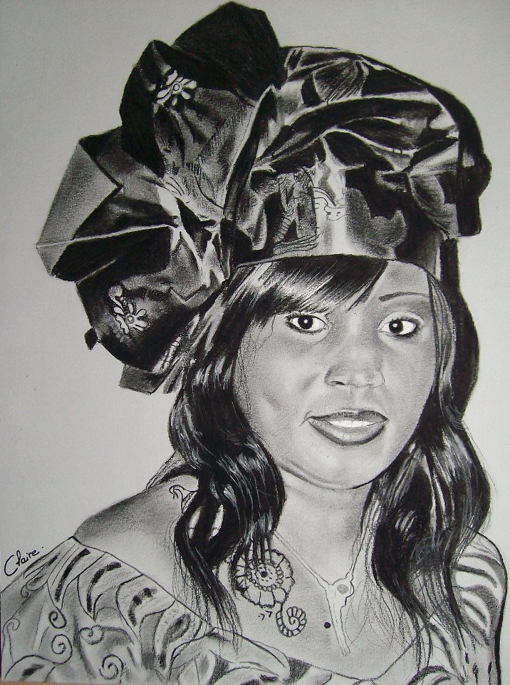 Très jolie femme, belle coiffe, réalisée aux fusains aussi