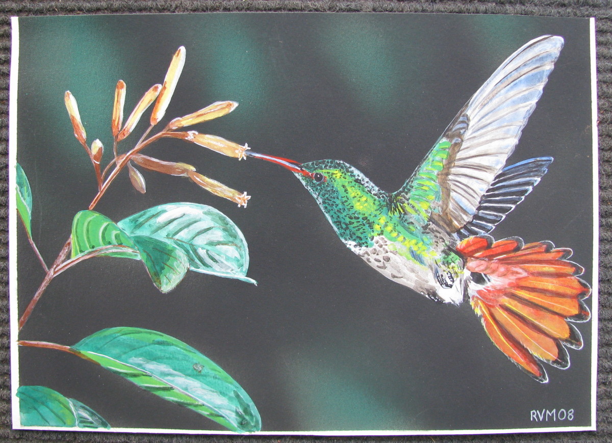 colibri (Amazilia tzacatl) et la fleur (Hamelia patens) acrylique sur papier 21X29,7cm