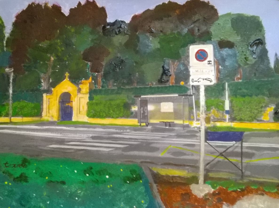 Arrêt de Bus 26 Tisséo CIMETIERE DE MONTBERON Type : paysage Acrylique Le fils du peintre Texier de Pélussin