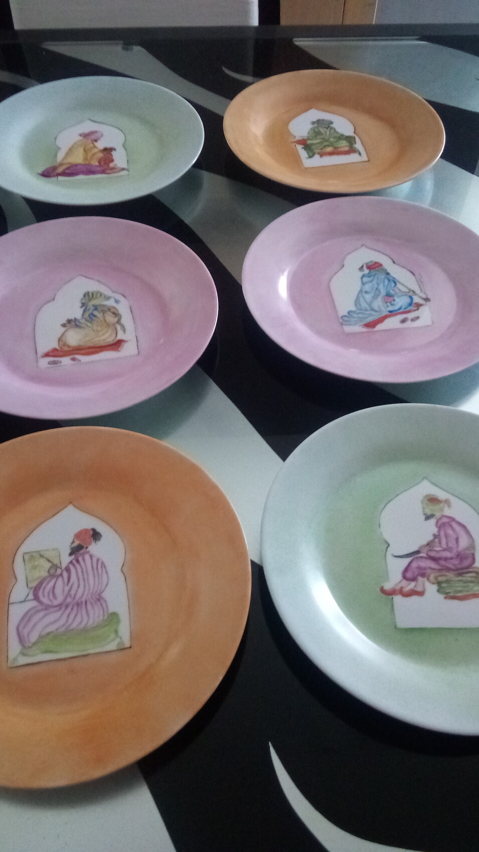 peinture sur porcelaine, 6 ASSIETTES à dessert.