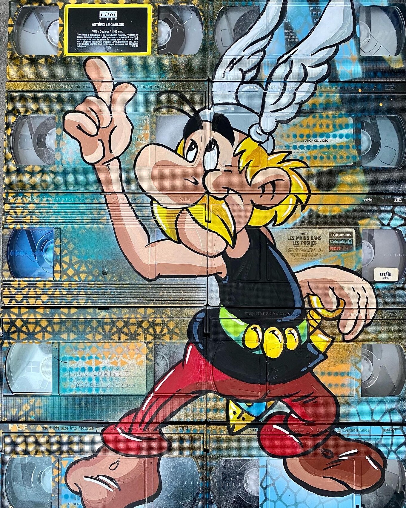 Peinture sur 10 cassettes VHS Dont une originale d’ Astérix le gaulois!