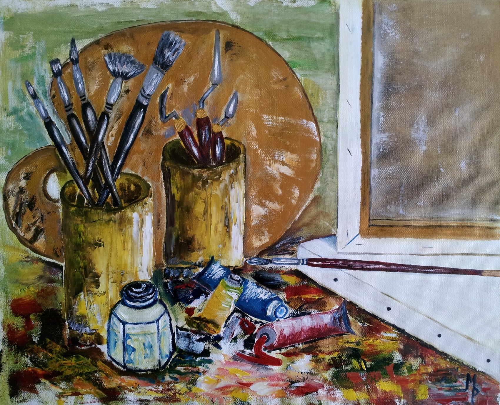 Une toile qui interpellera tous les peintres. Ça me fait penser que je dois ranger mon atelier. Bravo, vous avez gâché mon dimanche ????. Et bravo pour cette toile criante de vérité.