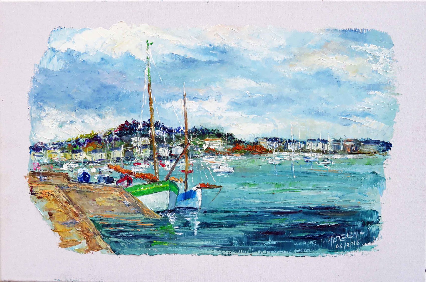 Huile Sur Toile, Esquisse Au Couteau; Œuvre Unique De 40x60 Cm. Amarré aux quais du port d'Audierne en Bretagne, le "Cap Sizun" vieux gréement, réplique d'un langoustier attend pour hisser les voiles et affronter l'Atlantique.