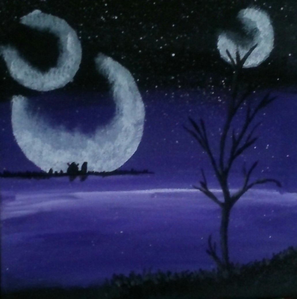 Aux claires des lunes. Création originale, peinture acrylique, toile coton sur châssis 30 x 30 cm.