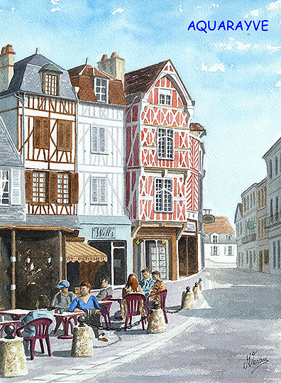Aquarelle sur papier Arches Grain fin Format 23x31 avec encadrement 30x40. (En vente)