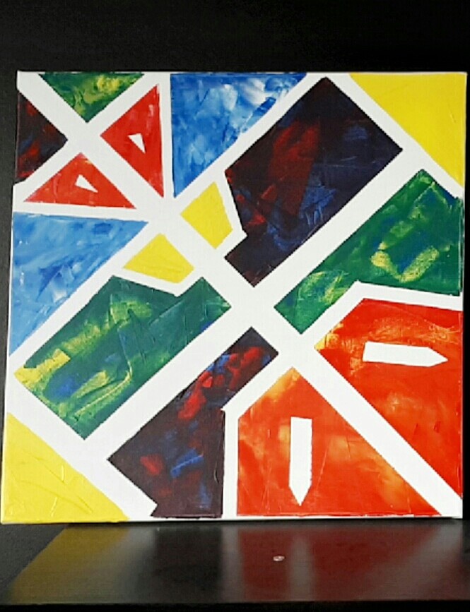 Symbole aztèque débordant de couleur. Peinture acrylique au couteau. Oeuvre d'avril 2017.