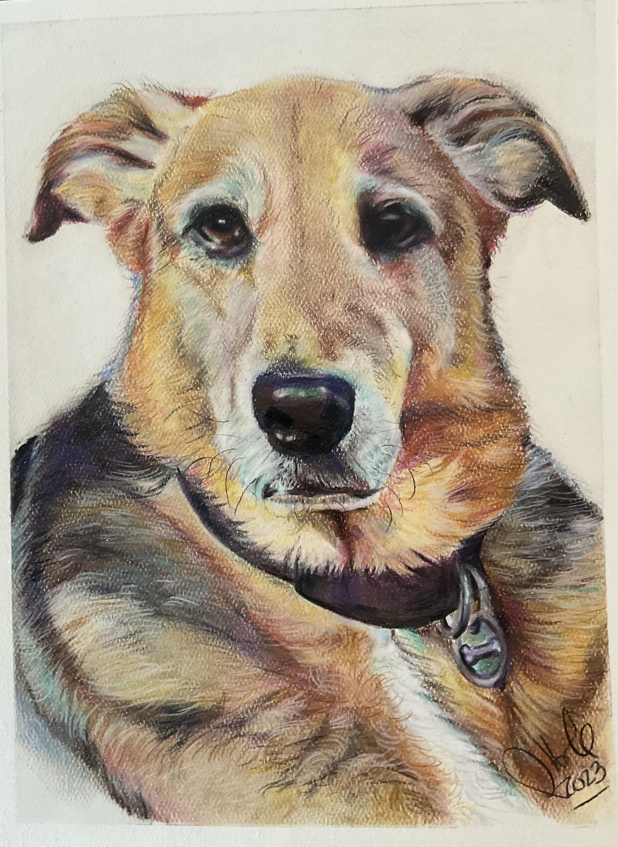 Mes œuvres sont des commandes de particuliers de leur animal de compagnie…donc elles ne sont jamais à vendre! Je prends les commandes