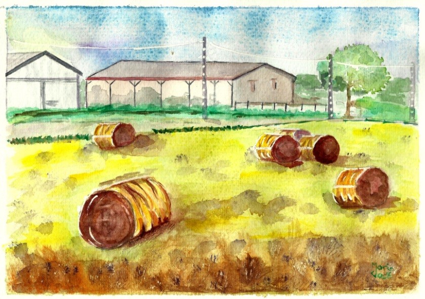 j'aime beaucoup ces paysages de campagne,mon enfance remonte à la surface.Belle aquarelle.