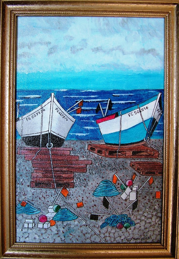 peinture acrylique - barques de pêcheurs sur une plage de normandie