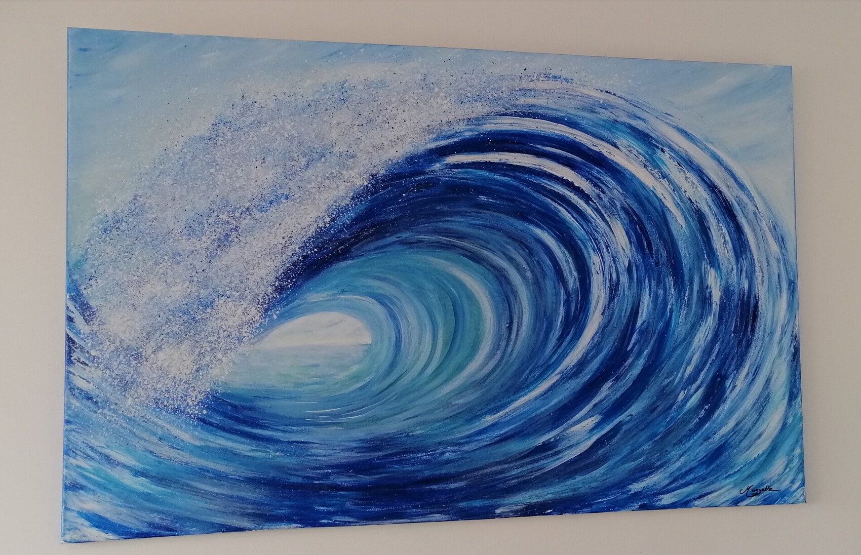 Je vous présente BELHARRA, France, l'une des plus grosses vagues du monde Il s'agit d'une acrylique originale sur une toile d'un format 75 x 115 cm