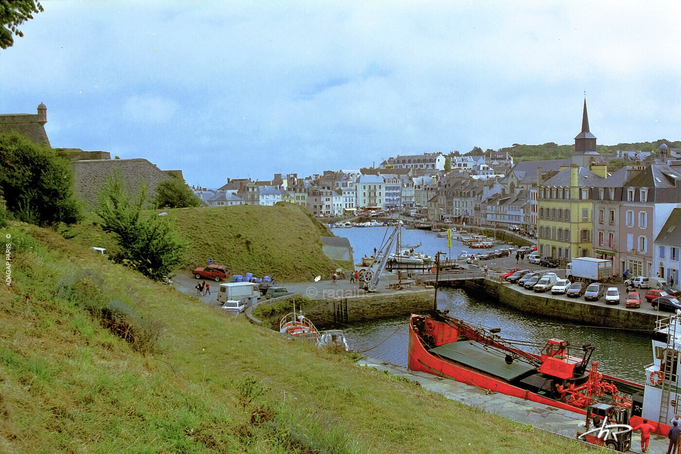 Belle Ile en Mer en 1998, photo argentique, vue du port depuis les hauteurs à coté de la citadelle.