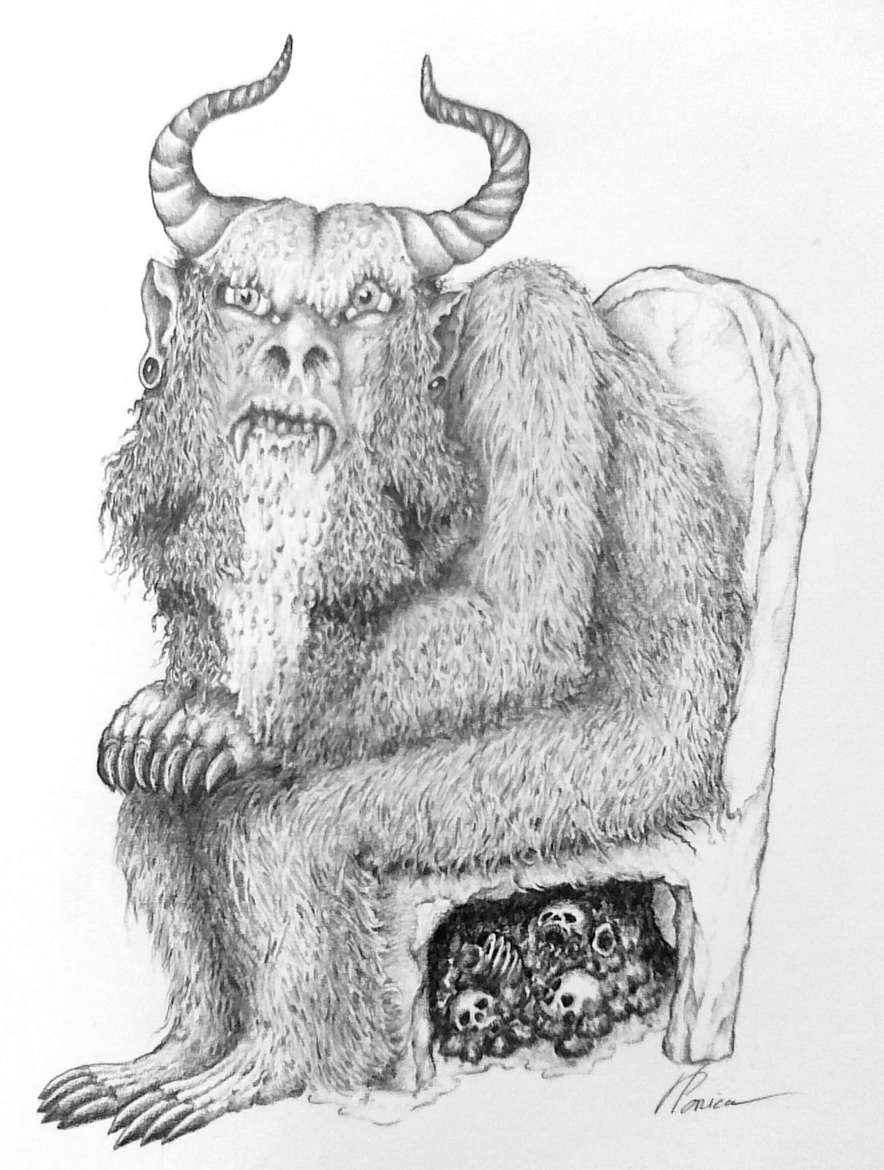 Dessin au crayon sur papier dessin blanc 30 x 20 - Étude de démon pour un dessin inspiré par "la tentation de Saint Antoine" en cours de préparation.