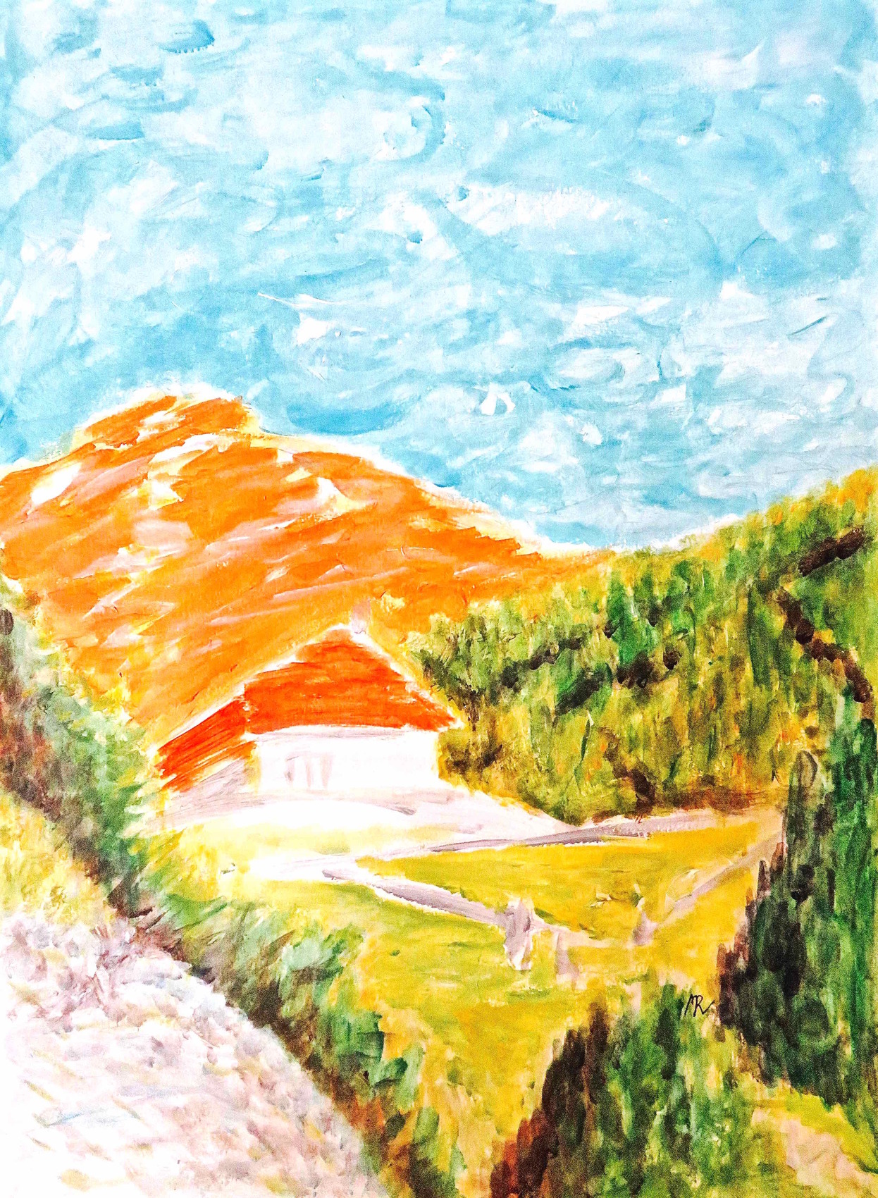 Acrylique, septembre 2013, 40 x 30 cm. Peinte d'après une de mes photos. Artnaturl, paysage, montagne, Queyras. === Acrylic paint, 2013. Painted according to one of my photos. Artnaturl, landscape, mountain. === Muriel REULET Artnaturl