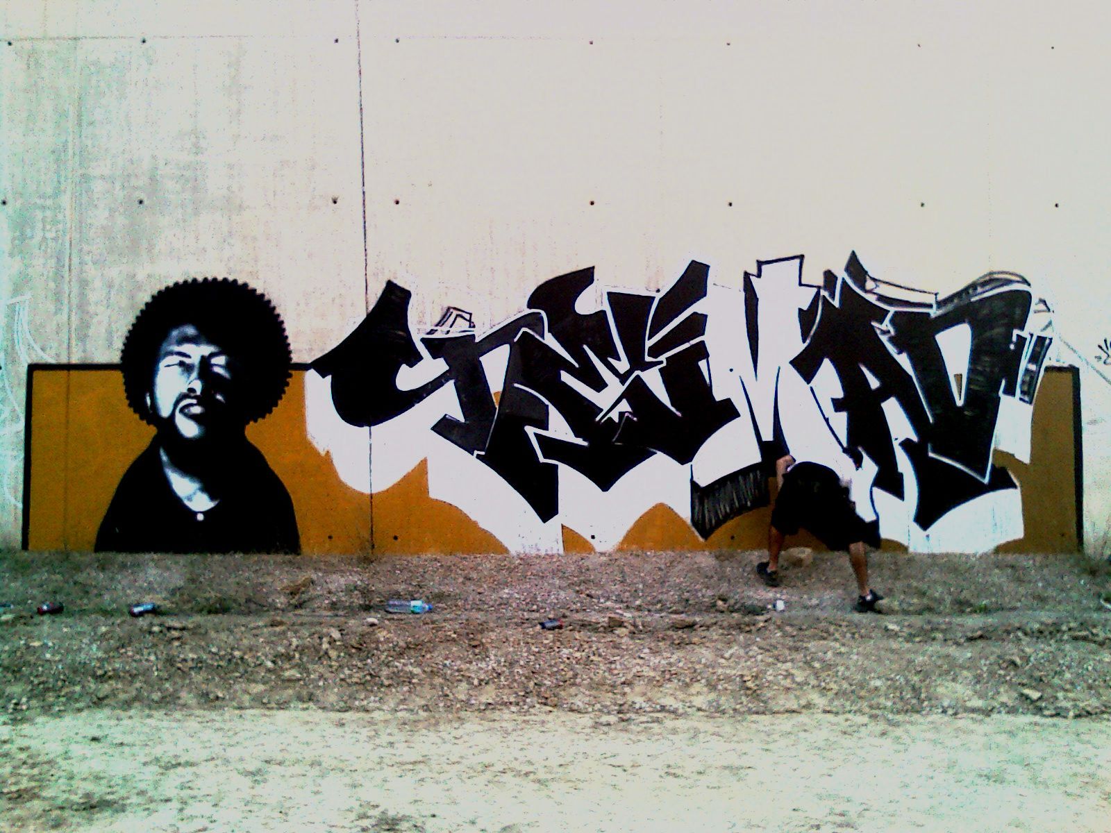 J'ai réalisé le perso à gauche et un ami "neimad" est en train de peindre son lettrage, Marseille 2010