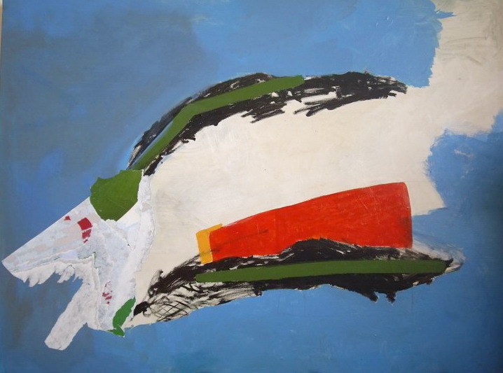 Peinture et collage sur toile 1m15 x 88 cm