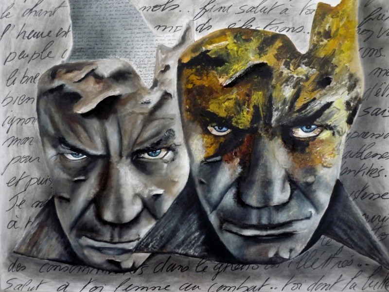 Peinture à l'huile, acrylique, plâtre, pierre noire et posca format 100 cm x 81 cm