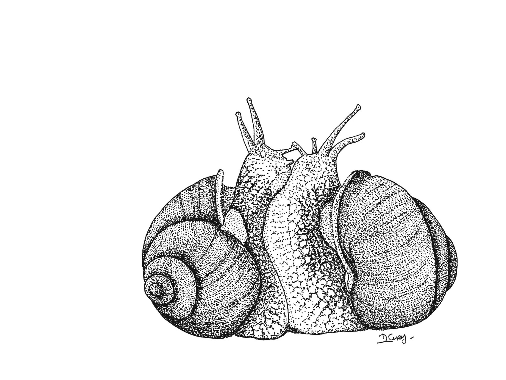 Escargots de Bourgogne, le bisou baveux ^^ encre de chine Inktober du 29/10/2017, thème : uni !