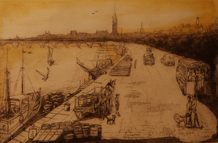 Gravure à l'eau forte Bordeaux, les Chartrons