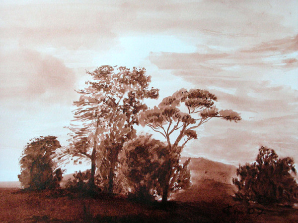 Lavis d'un bosquet, élégance d'arbres différents qui vont si bien ensemble....30*45