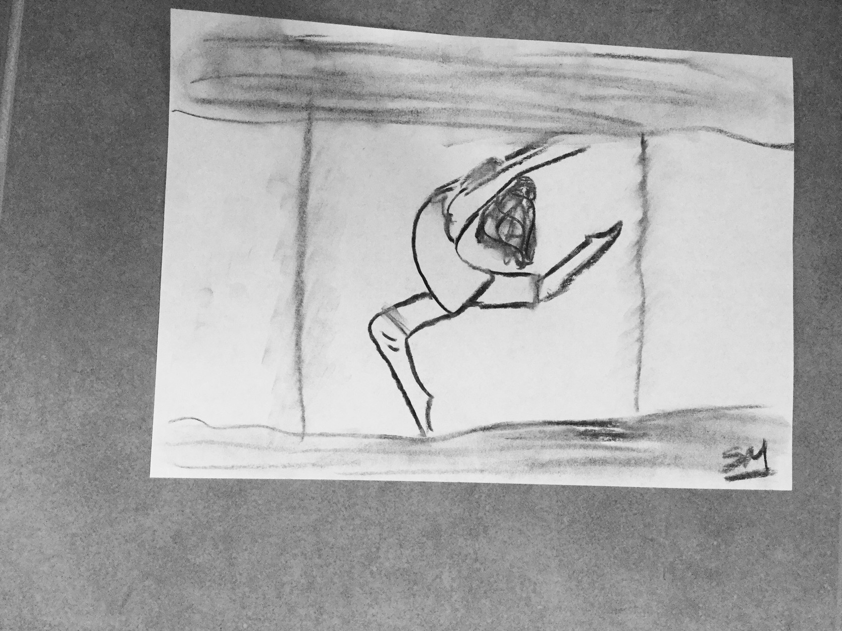 Dessin au fusain. ("Bouger,transpirer,danser,et tout oublier.")