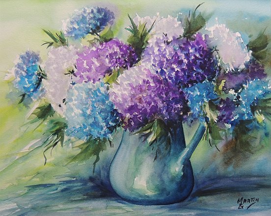 Formidable bouquet d'hortensias je ne suis moi non plus pas insensible a votre beau travail vos couleurs et votre sensibilité