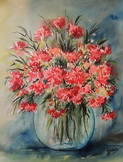 fleurs magnifiques dans leur vase nourricier très belle aquarelle