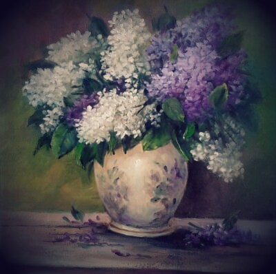 Huile sur toile representant un magnifique bouquet de lilas du jardin de l artiste. Avec certificat d authenticite. Reproduction interdite